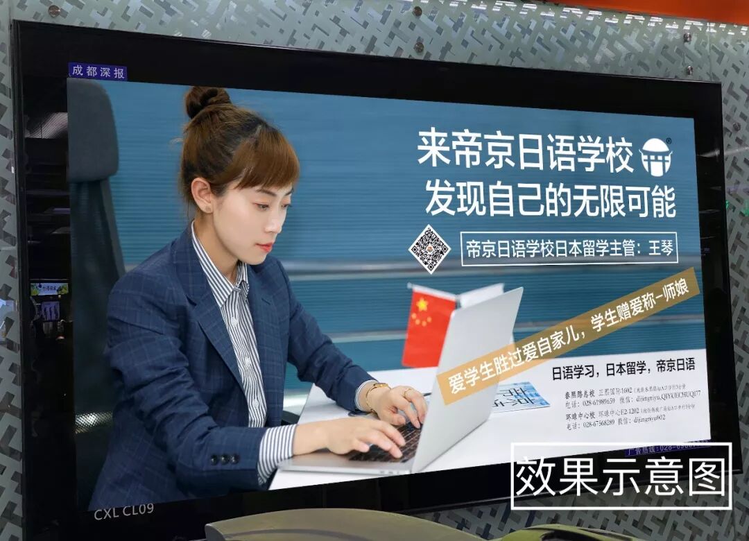 广告内容(暂定): 日语学习・日本留学一站式服务 学校法人|成都帝京日语学校 春熙路总校 QQ:1686668657 电话:028-61989659 微信:dijingriyu,QIYUECHUQI77 地址:春熙路・正熙国际1602 地铁春熙路站下车,A出口步行3分钟即达。 环球中心校 QQ:1686668627 电话:028-67568289 微信:dijingriyu002 地址:环球中心E2-1202 地铁锦城广场站下车,A出口步行3分钟即达。