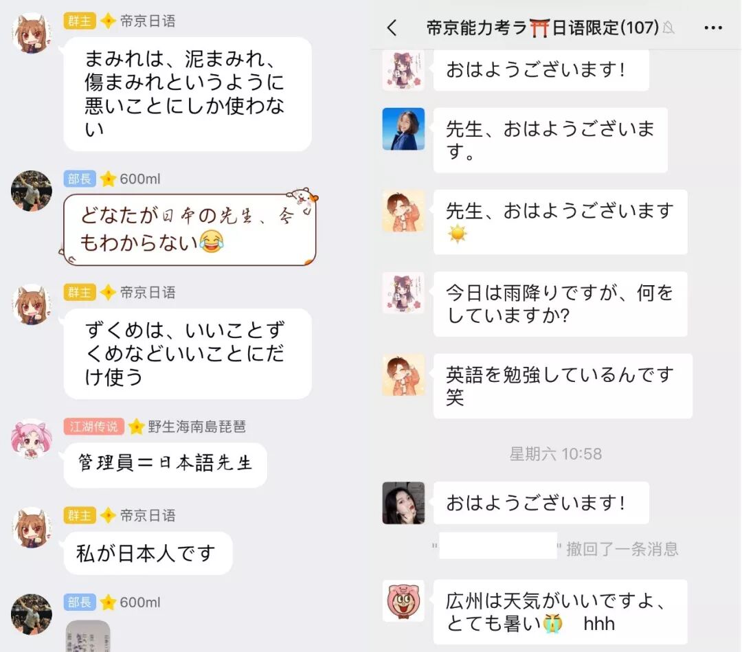 特别安排了外教化身群主和大家用日语聊天