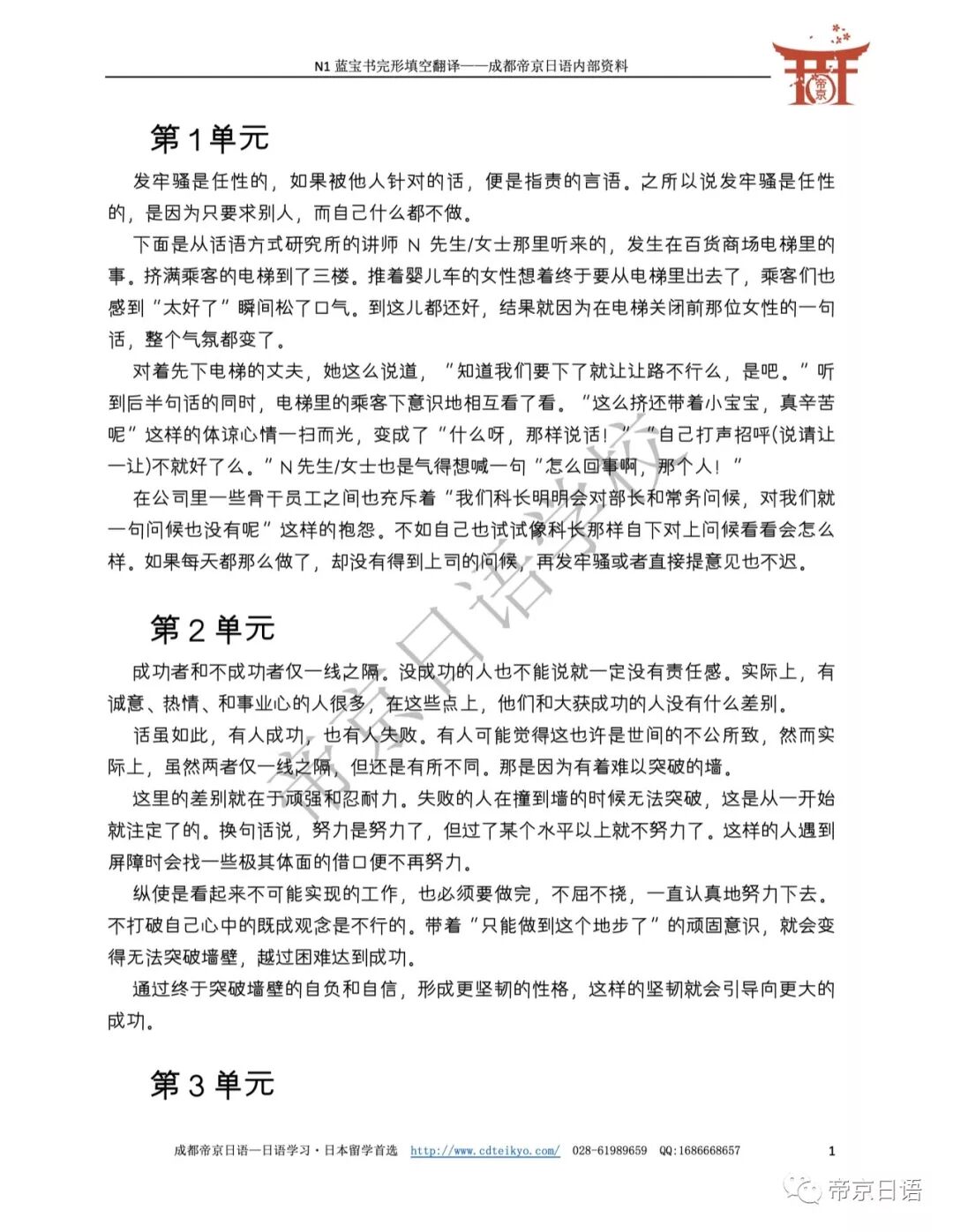 更多日语学习好资料,请扫码并关注我们的微信订阅号↓ 日语学习/日本留学/日本文化 喜欢请关注并分享(^_−)−☆ Tel:028-61989659 QQ:1686668657 www.cdteikyo.com 成都・春熙路・正熙国际1601