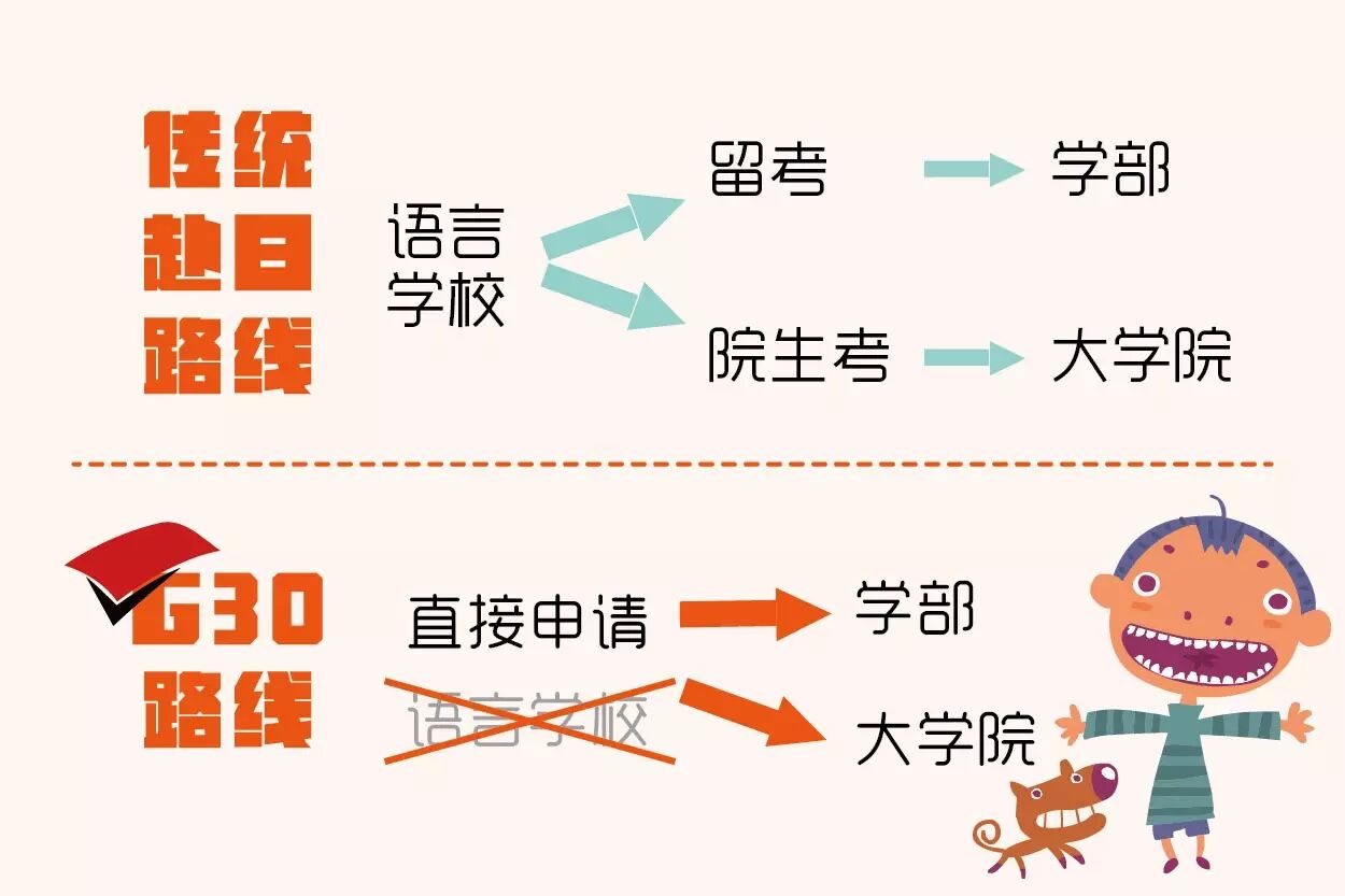 G30项目可直接通过“英语成绩”申请学部或大学院(硕士),跳过读语言学校这一环节,省事、省力、省钱。