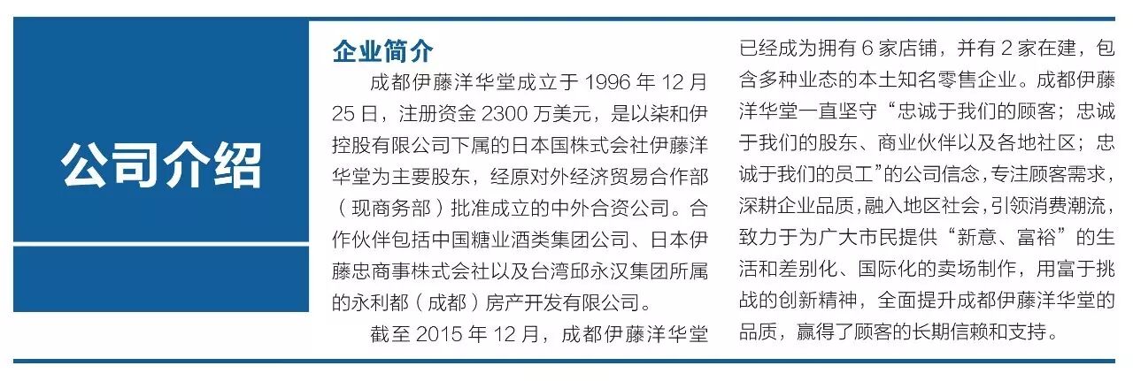 1、参观伊藤洋华堂成都总部,届时将会有伊藤总部人员为大家讲解工作流程,也会有提问时间让大家互动。