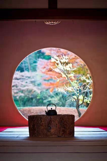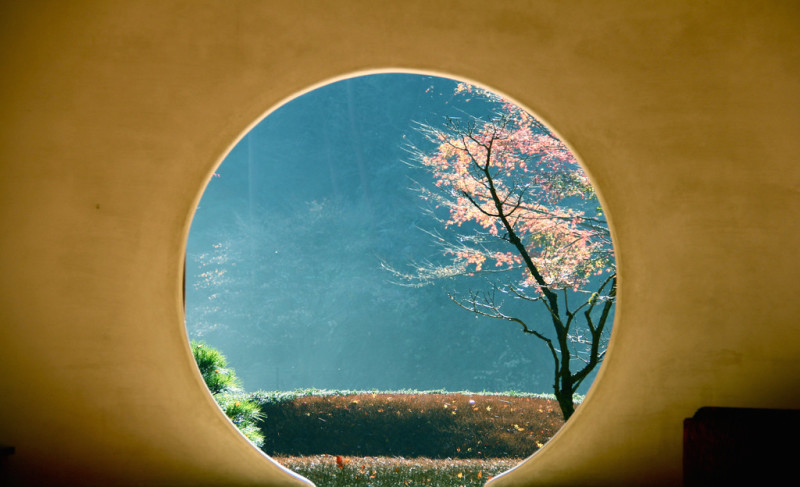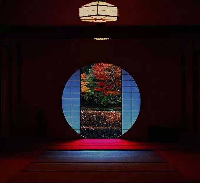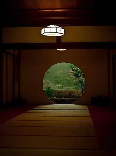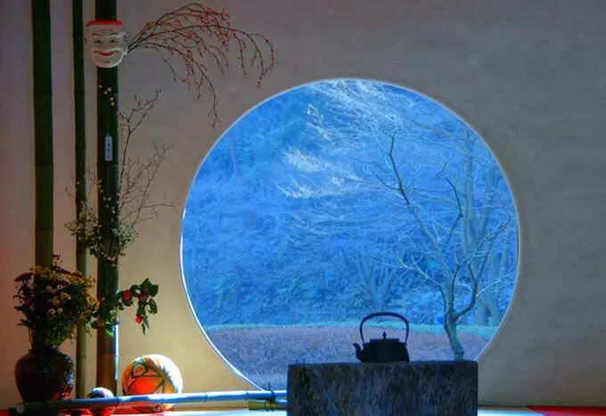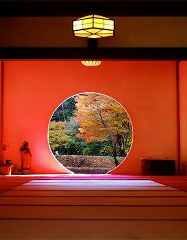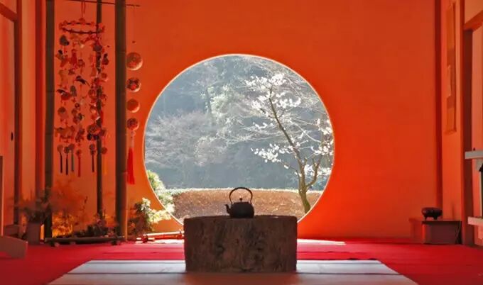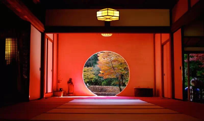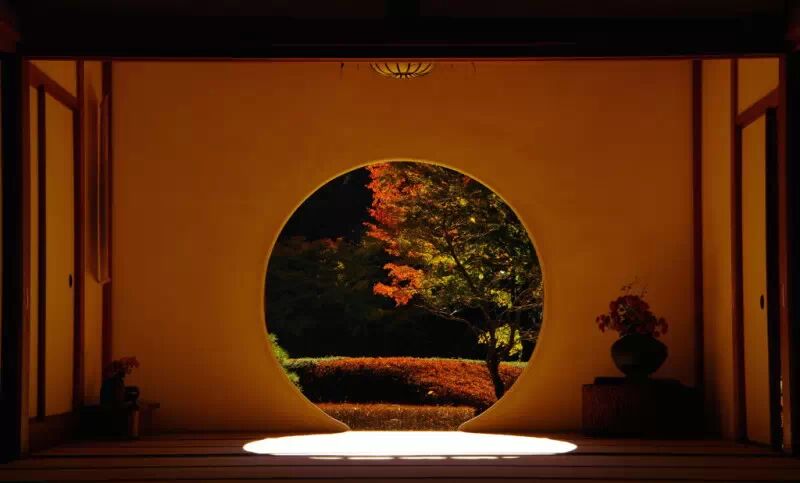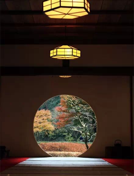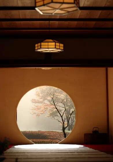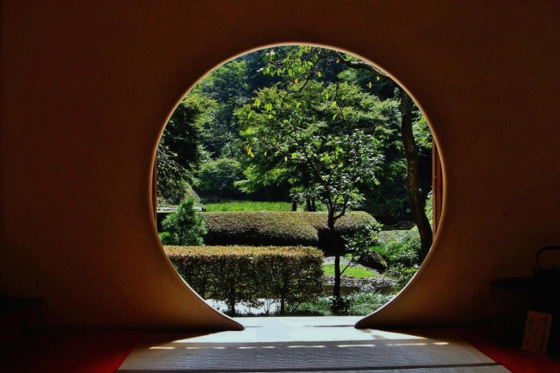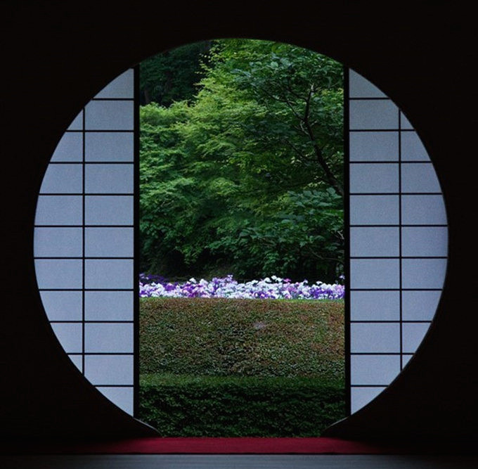 明月院有一种深山寺院的格局,园林设计别具一格,显得格外的幽静。寺院的本堂更是一座典型的日式禅房,大殿正面开放式圆形壁窗将庭院的光线温柔地投入堂室之中。