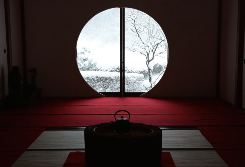 屋外自然的景色,随着四季的变化,像一幅画一样“挂”在屋内,显得“禅”味十足又意犹未尽。